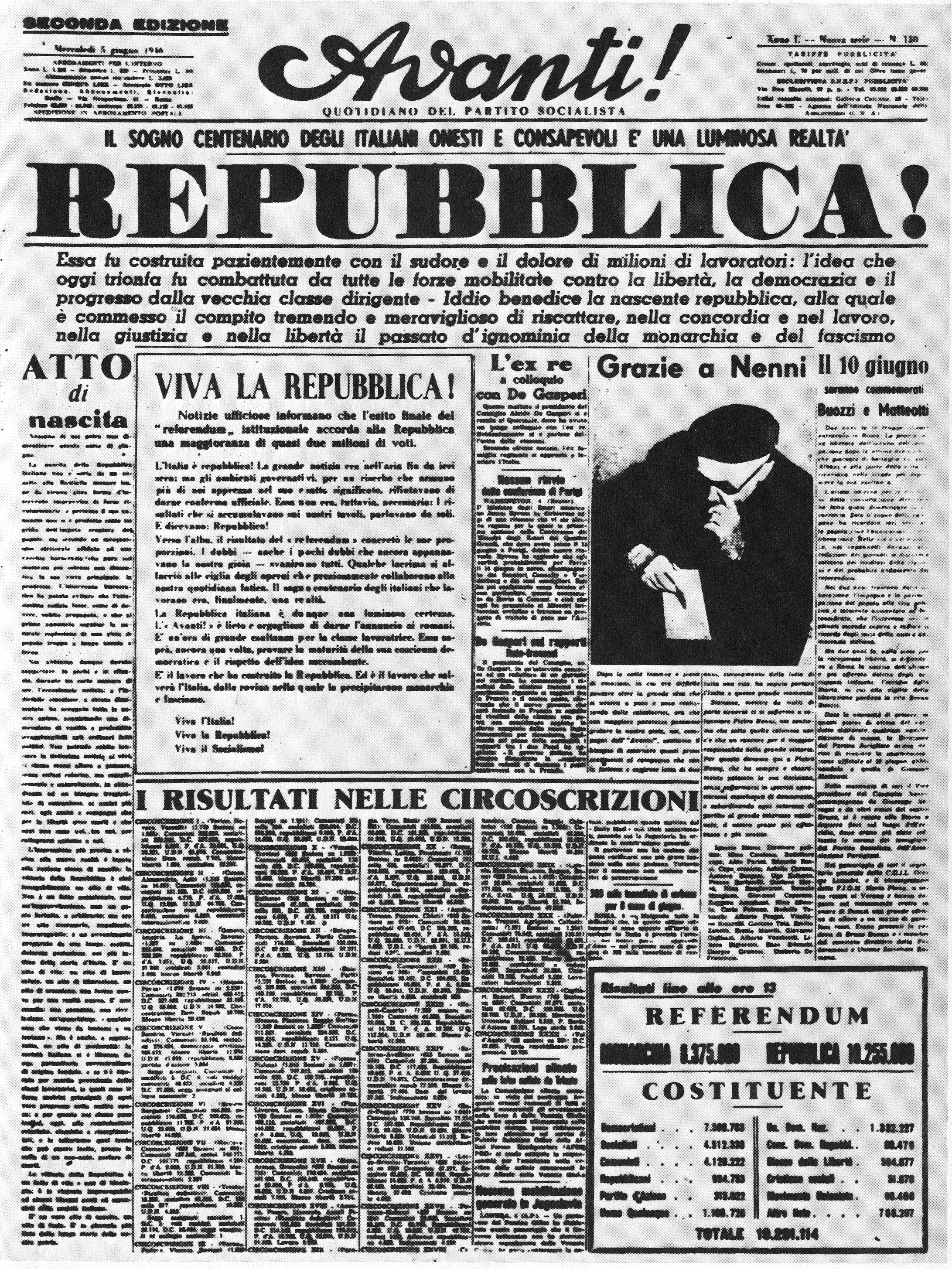 Il due giugno la Repubblica vinse per un soffio. L’Avanti! celebrò la vittoria con un “grazie a Nenni”, scritto dal direttore Ignazio Silone.